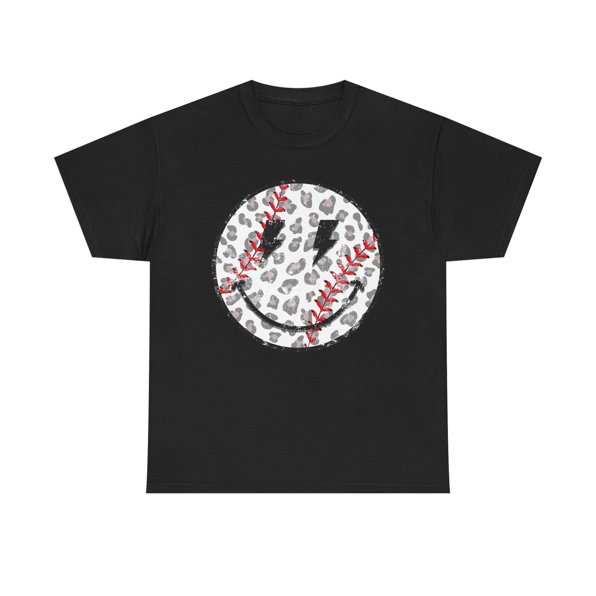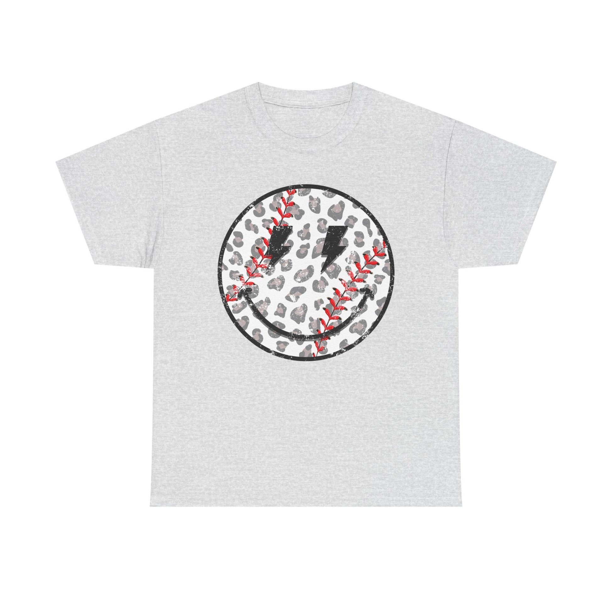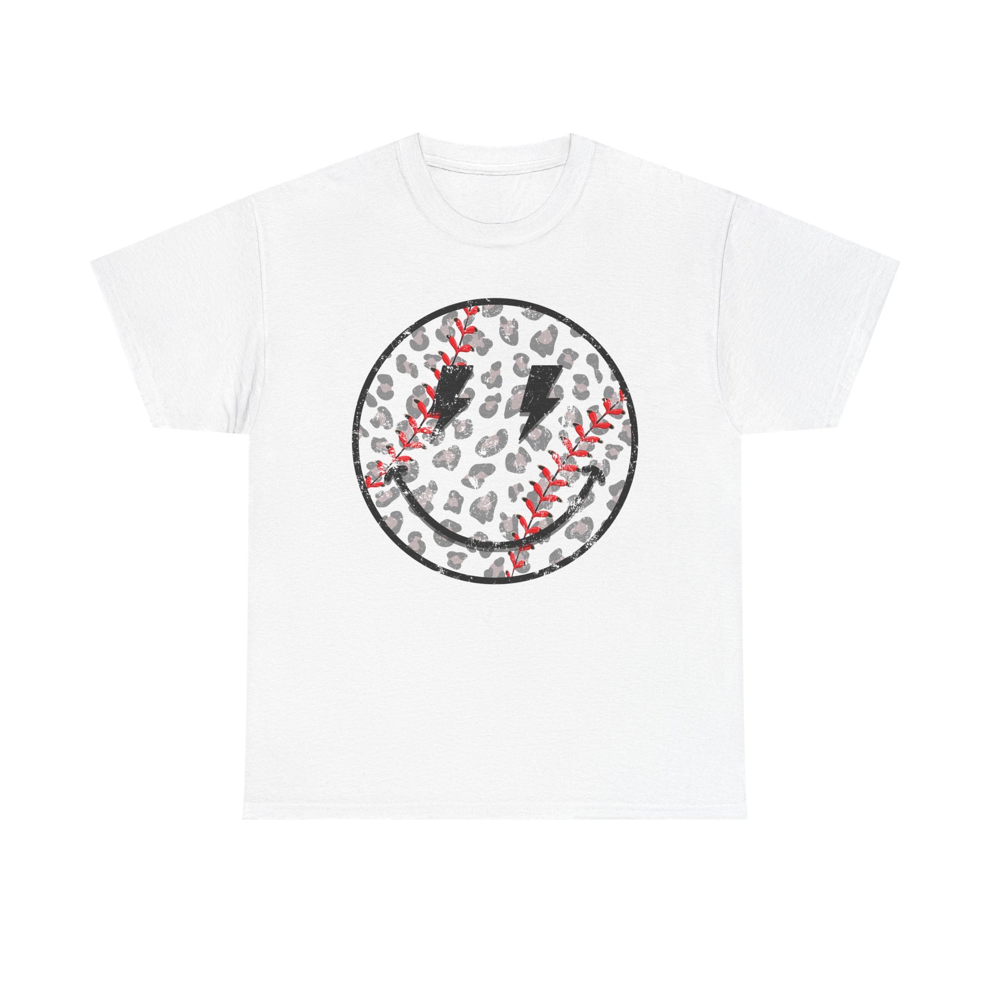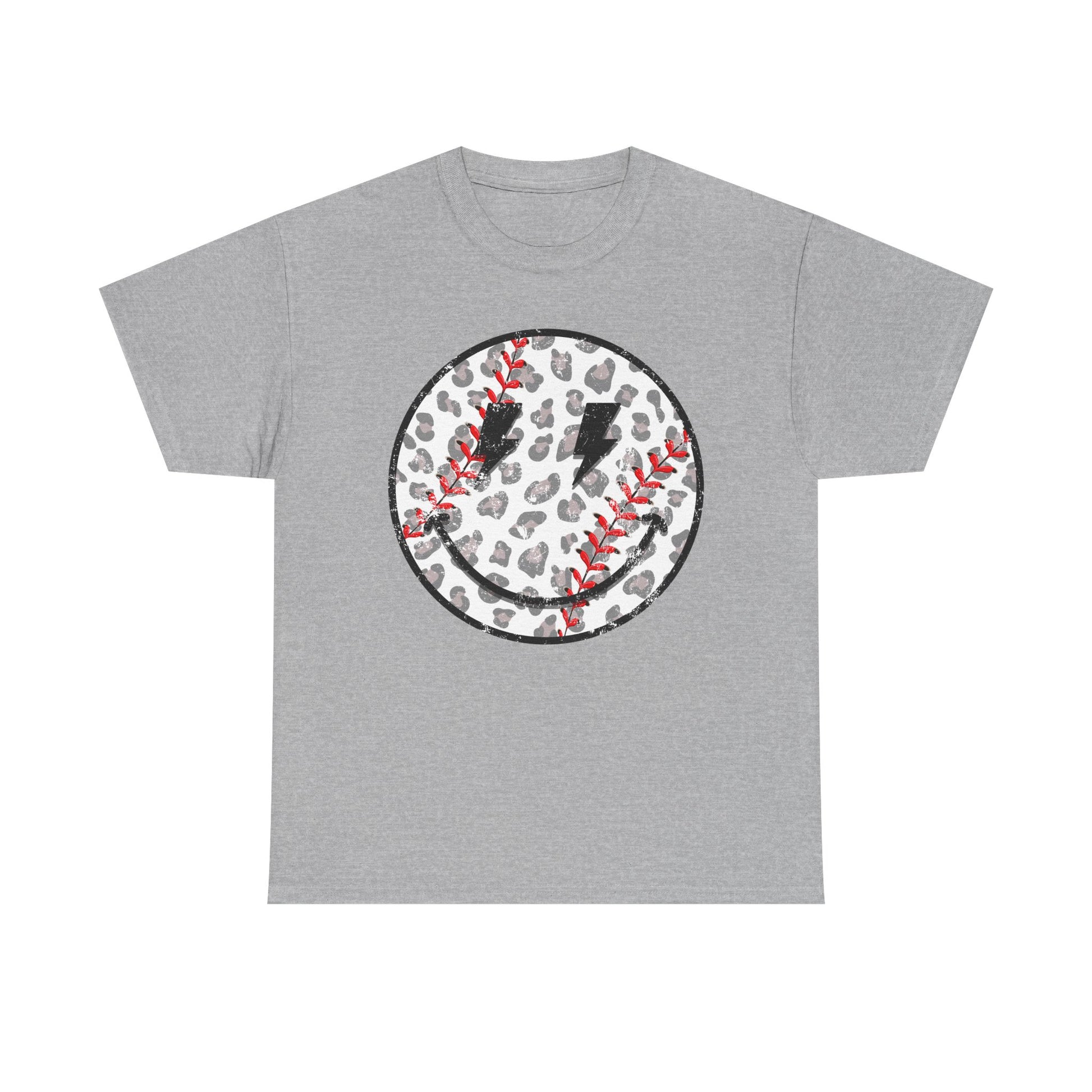 Baseball Leopard Smiley Face Graphic Shirt
