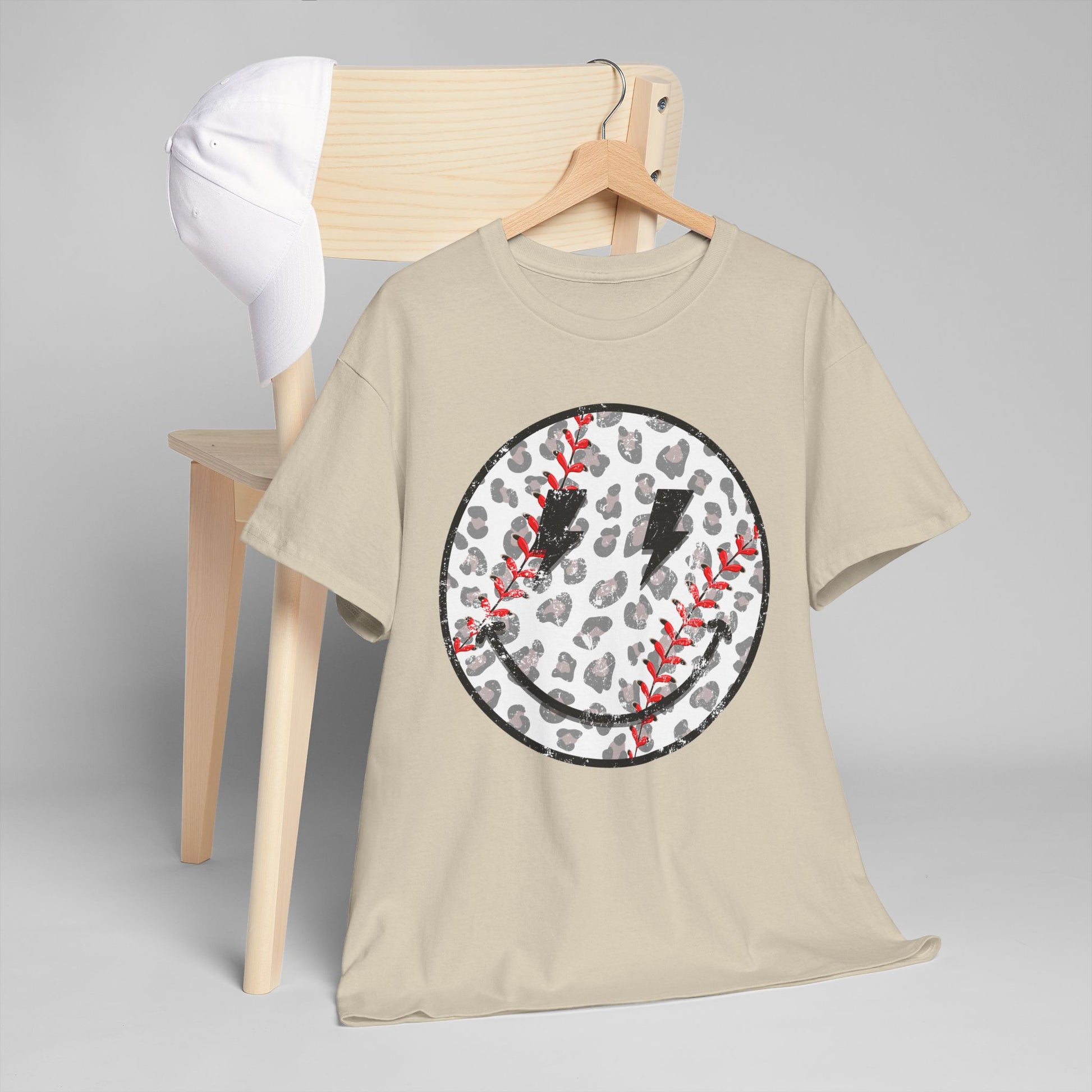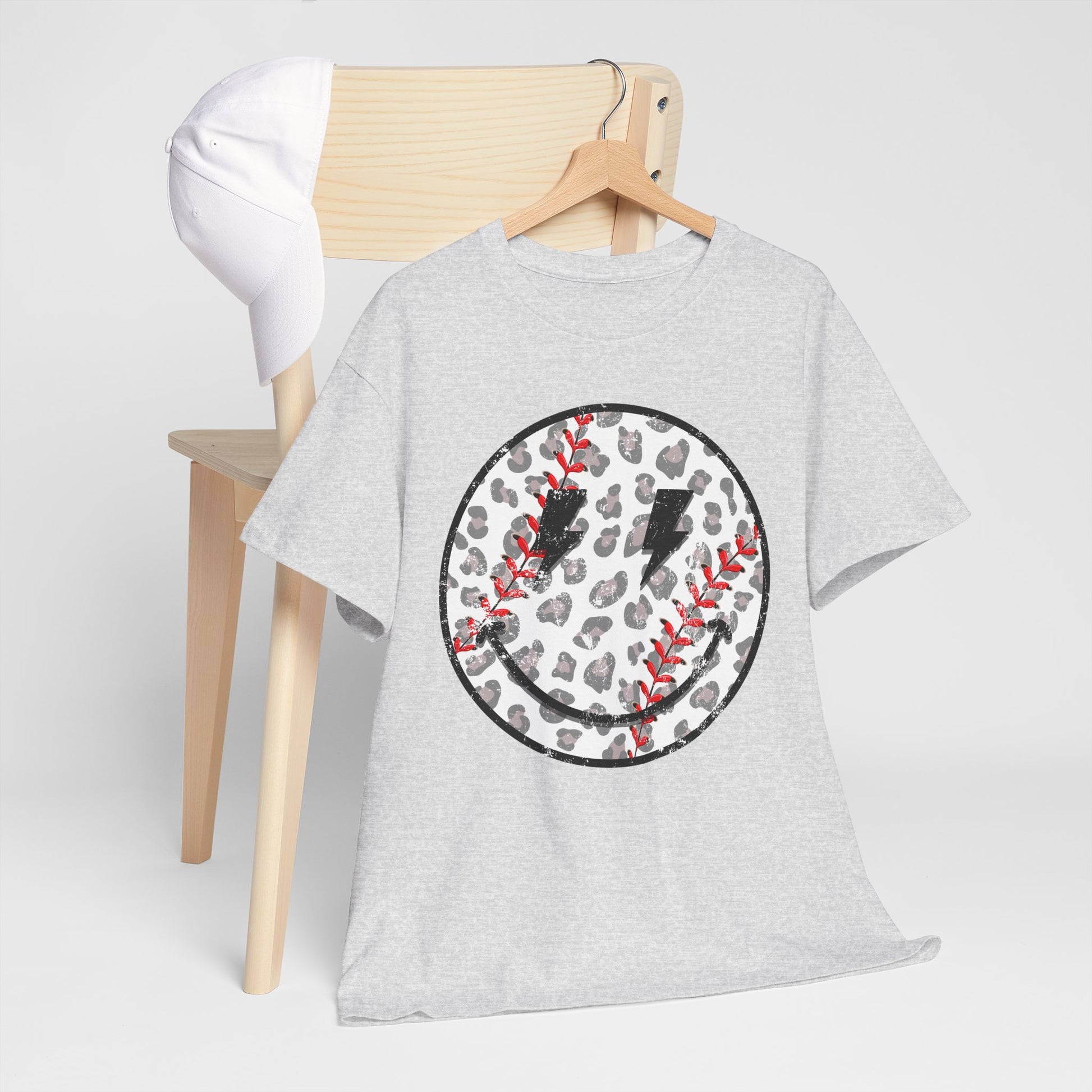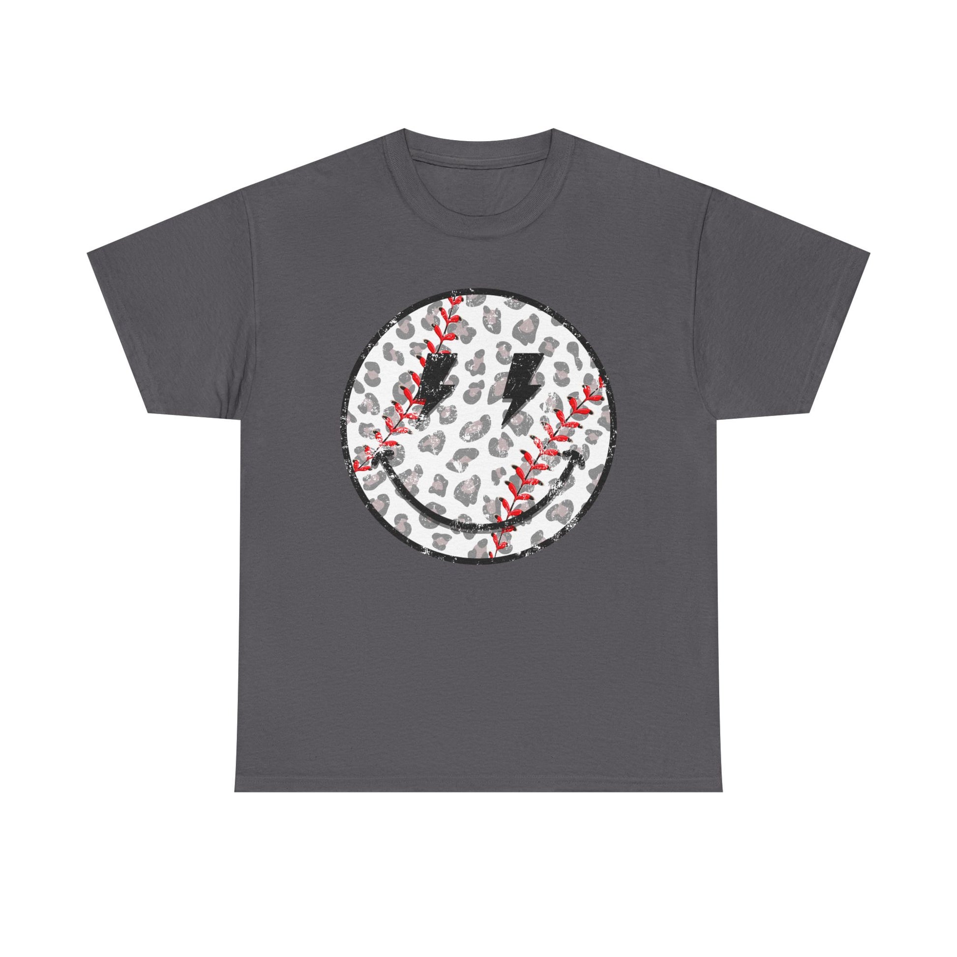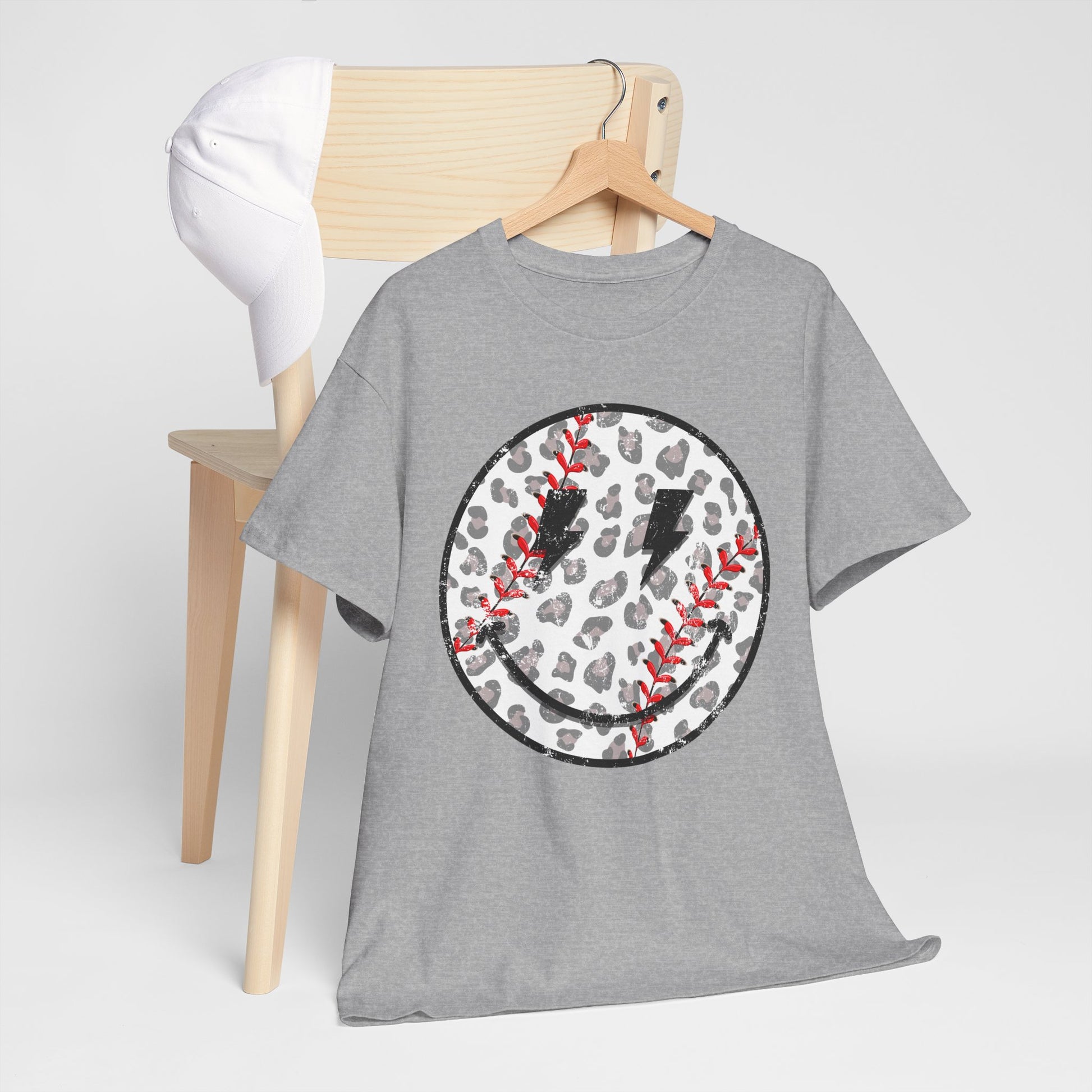 Baseball Leopard Smiley Face Graphic Shirt