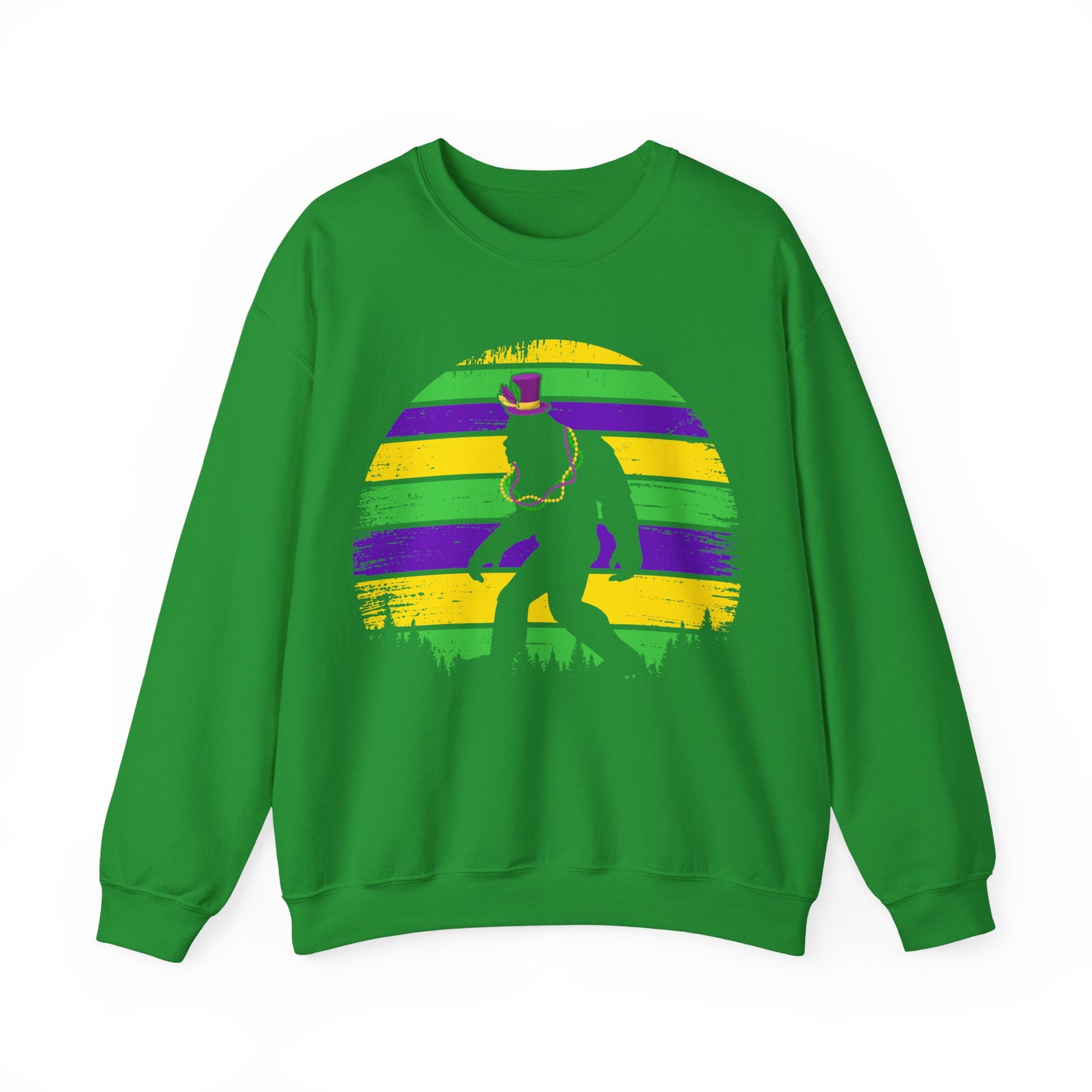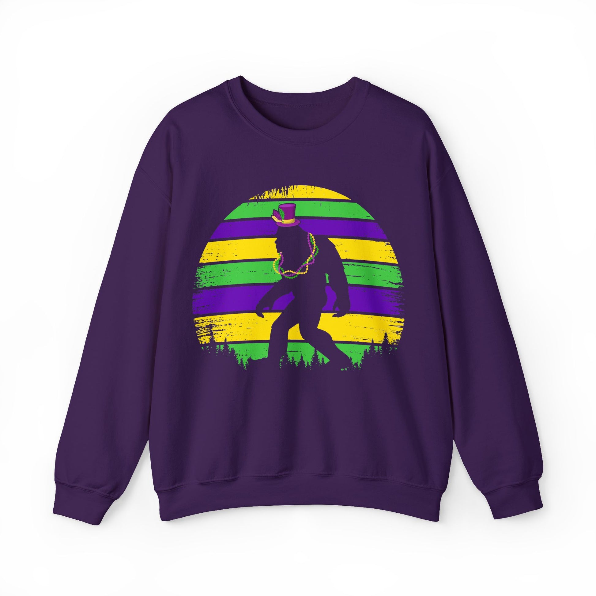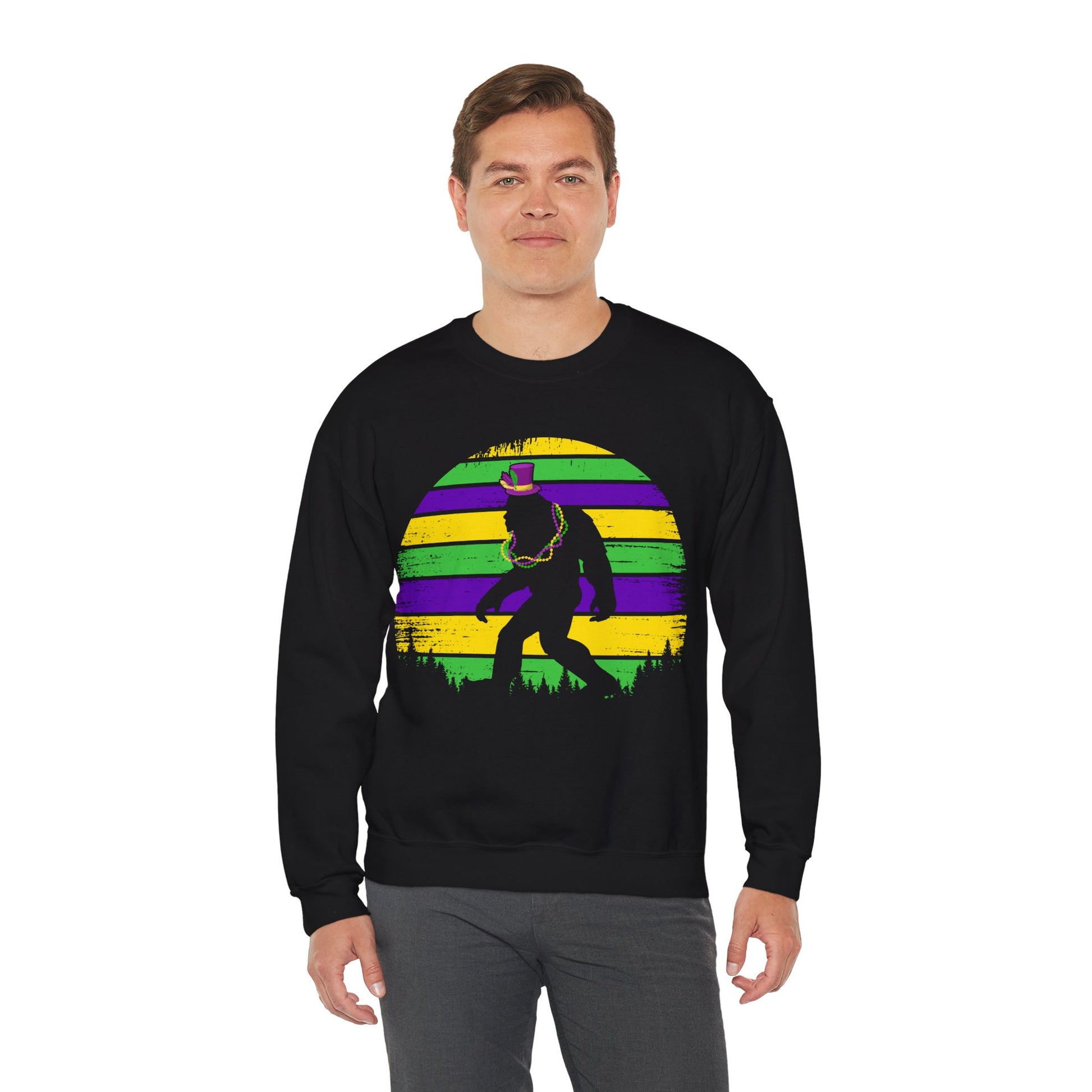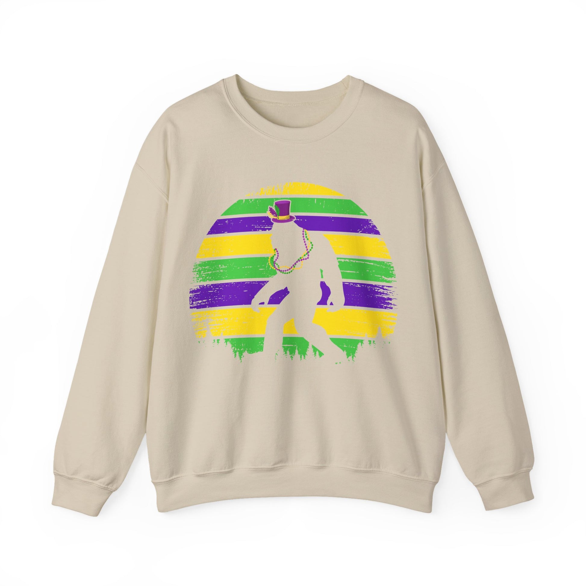 Mardi Gras Bigfoot Sasquatch on a Gildan Sweatshirt