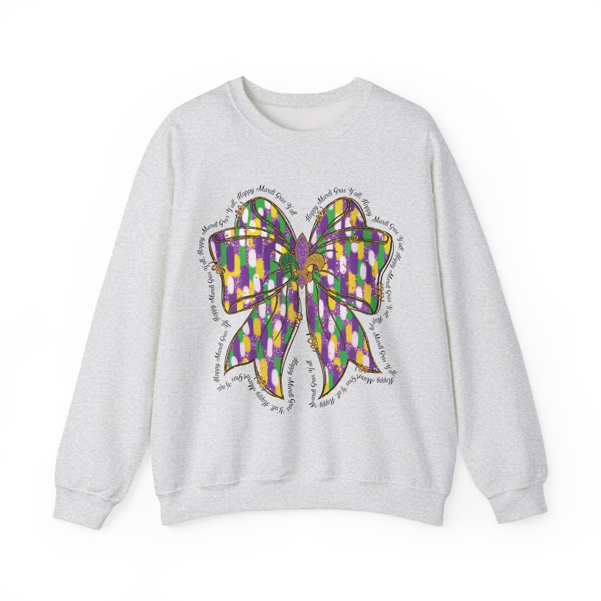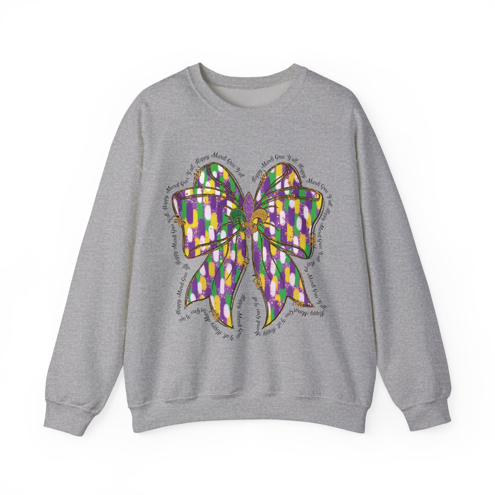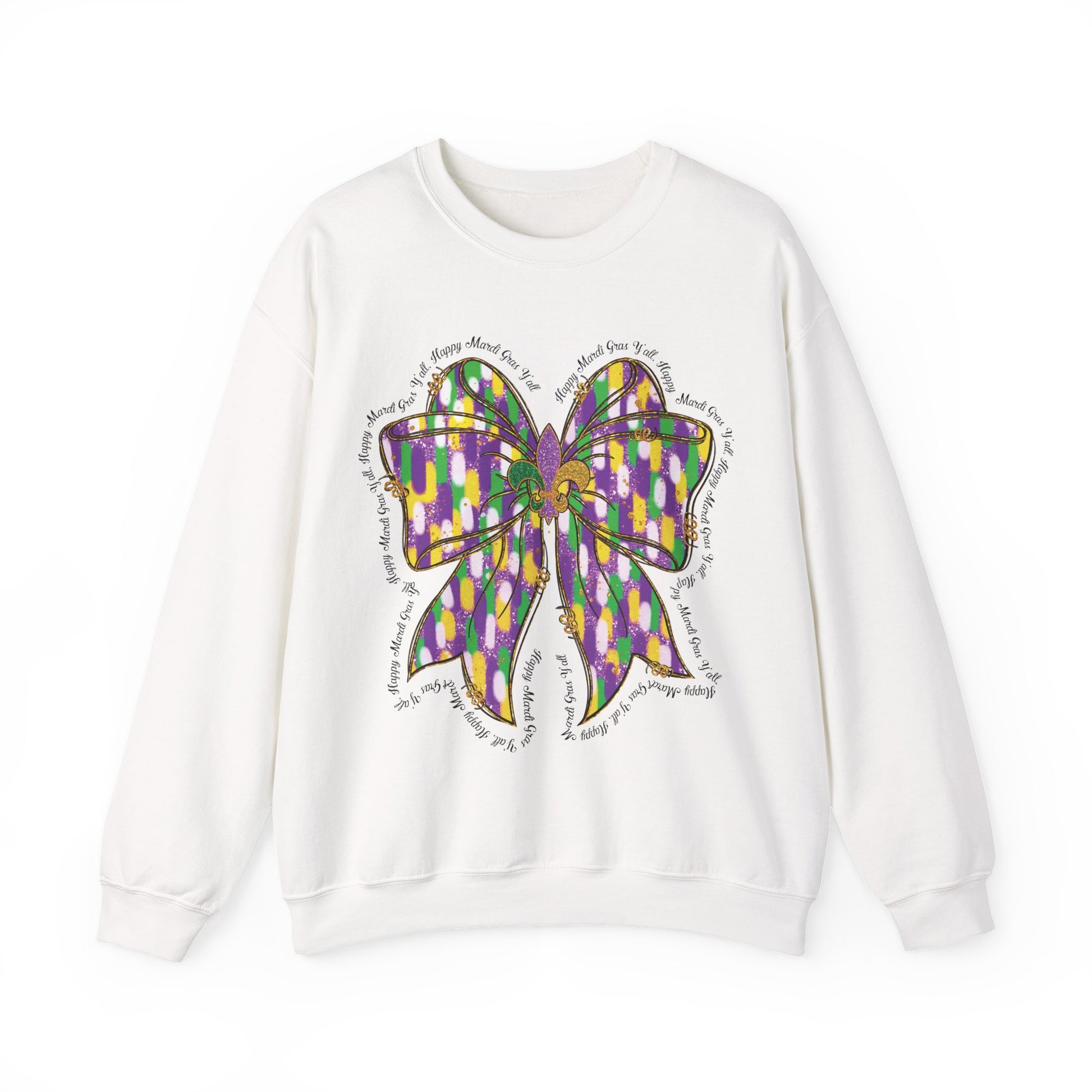 Mardi Gras Croquette Bow on a Gildan Sweatshirt