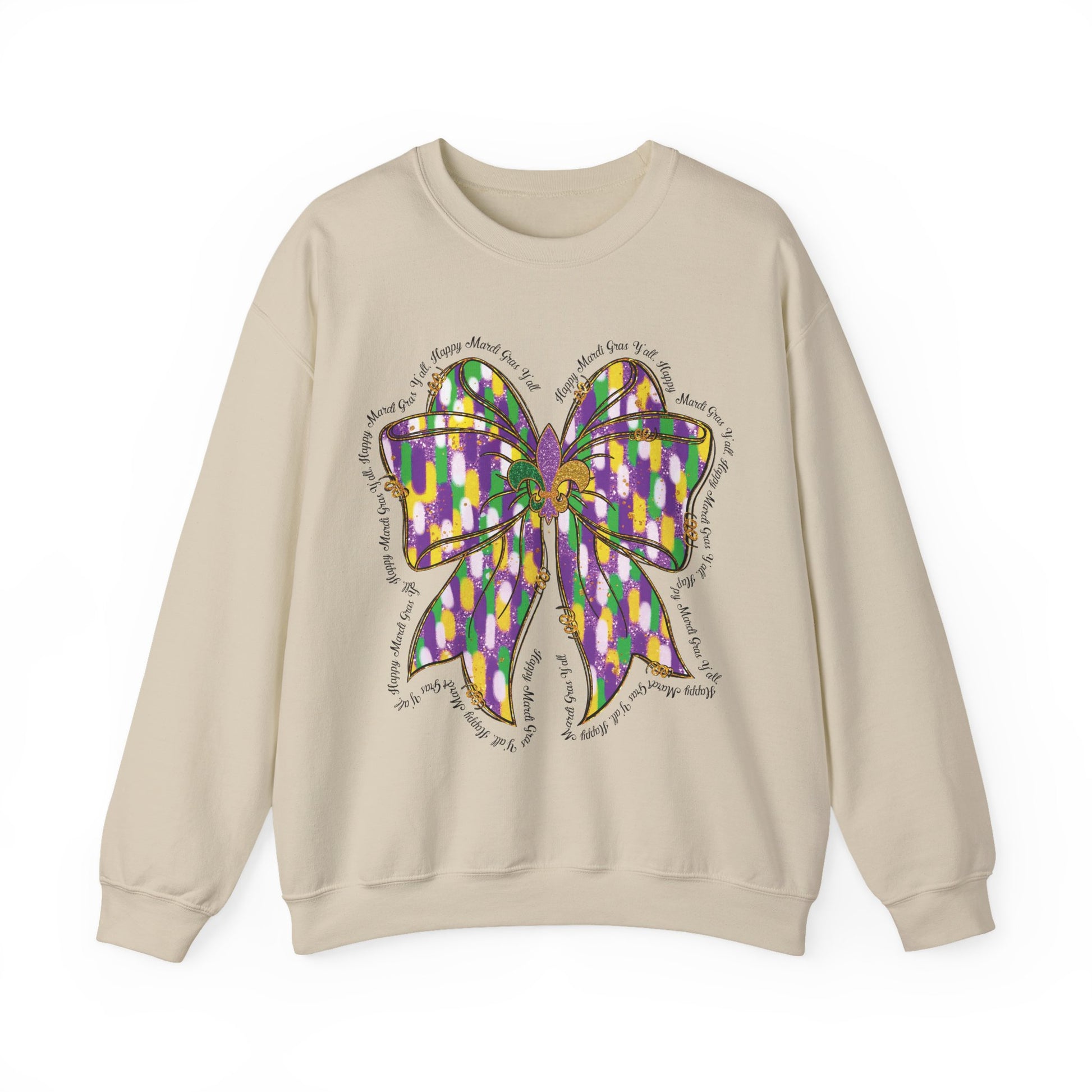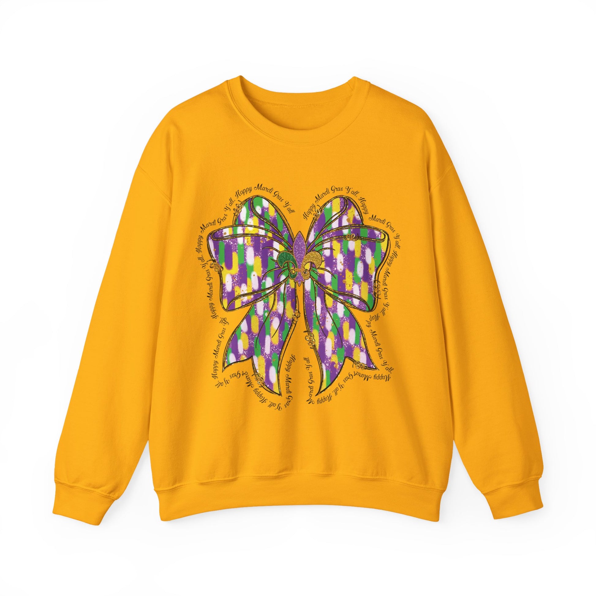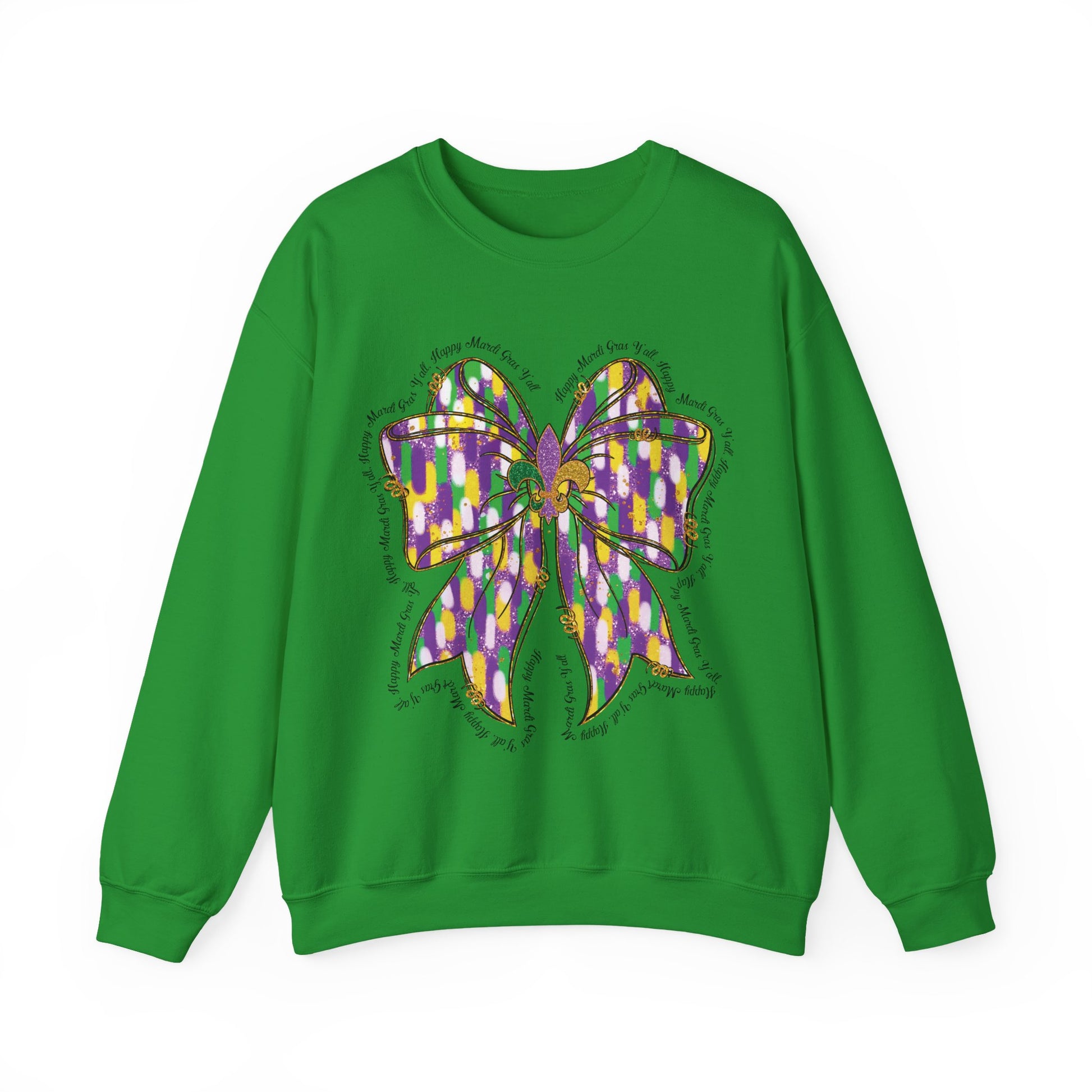 Mardi Gras Croquette Bow on a Gildan Sweatshirt
