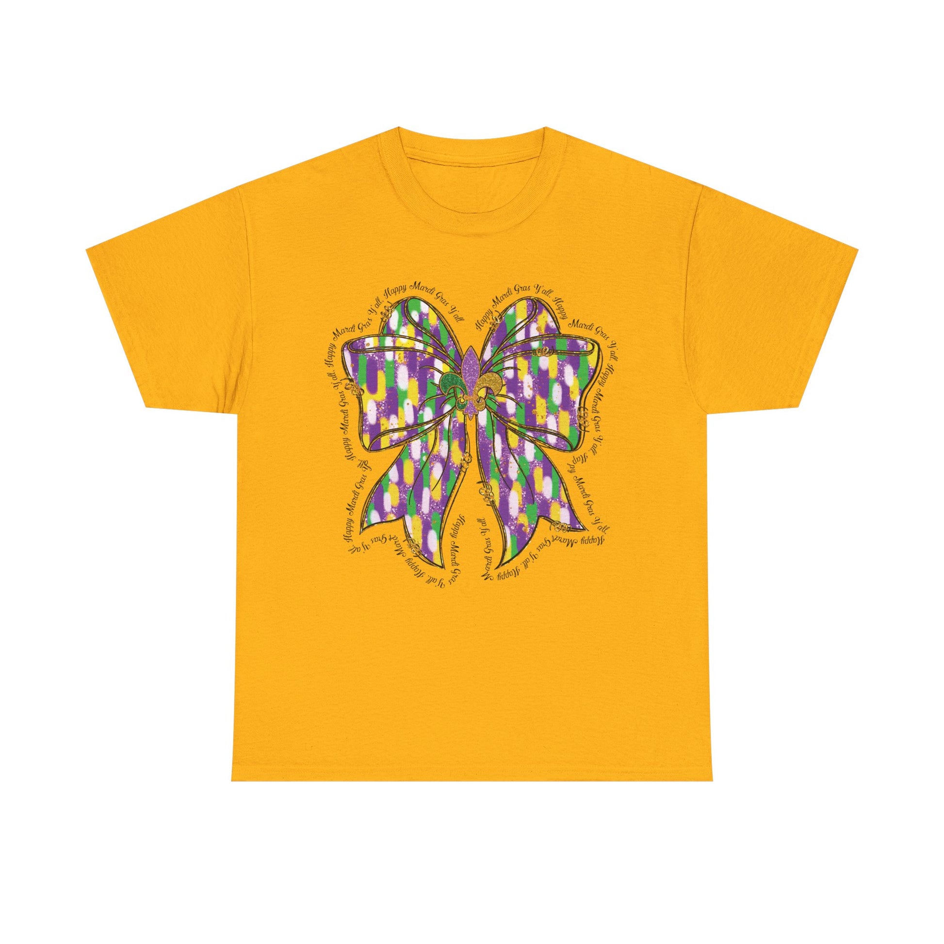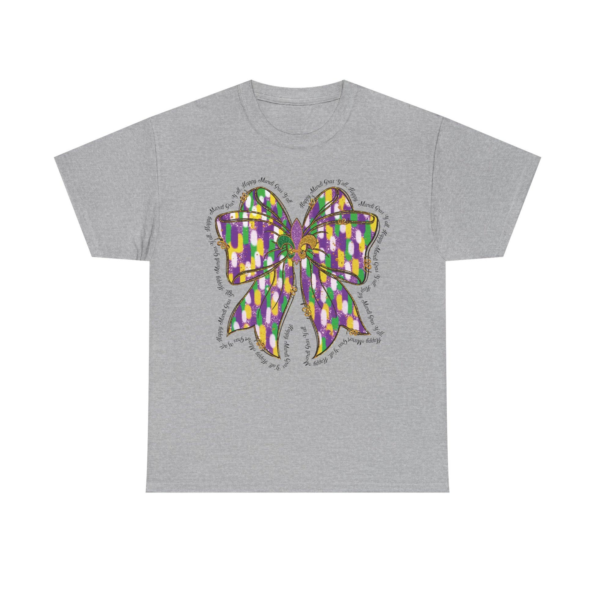 Mardi Gras Croquette Bow on a Gildan T-Shirt