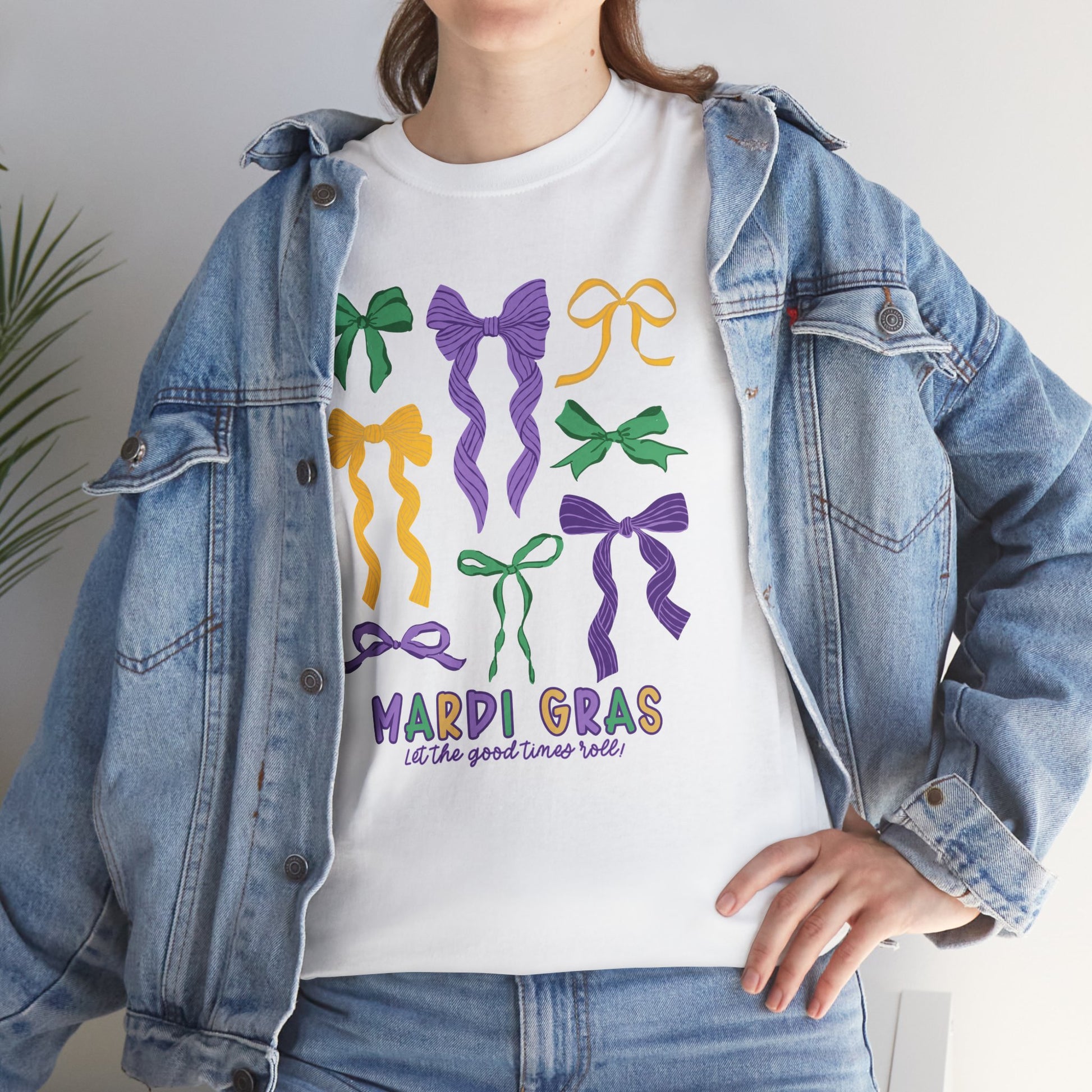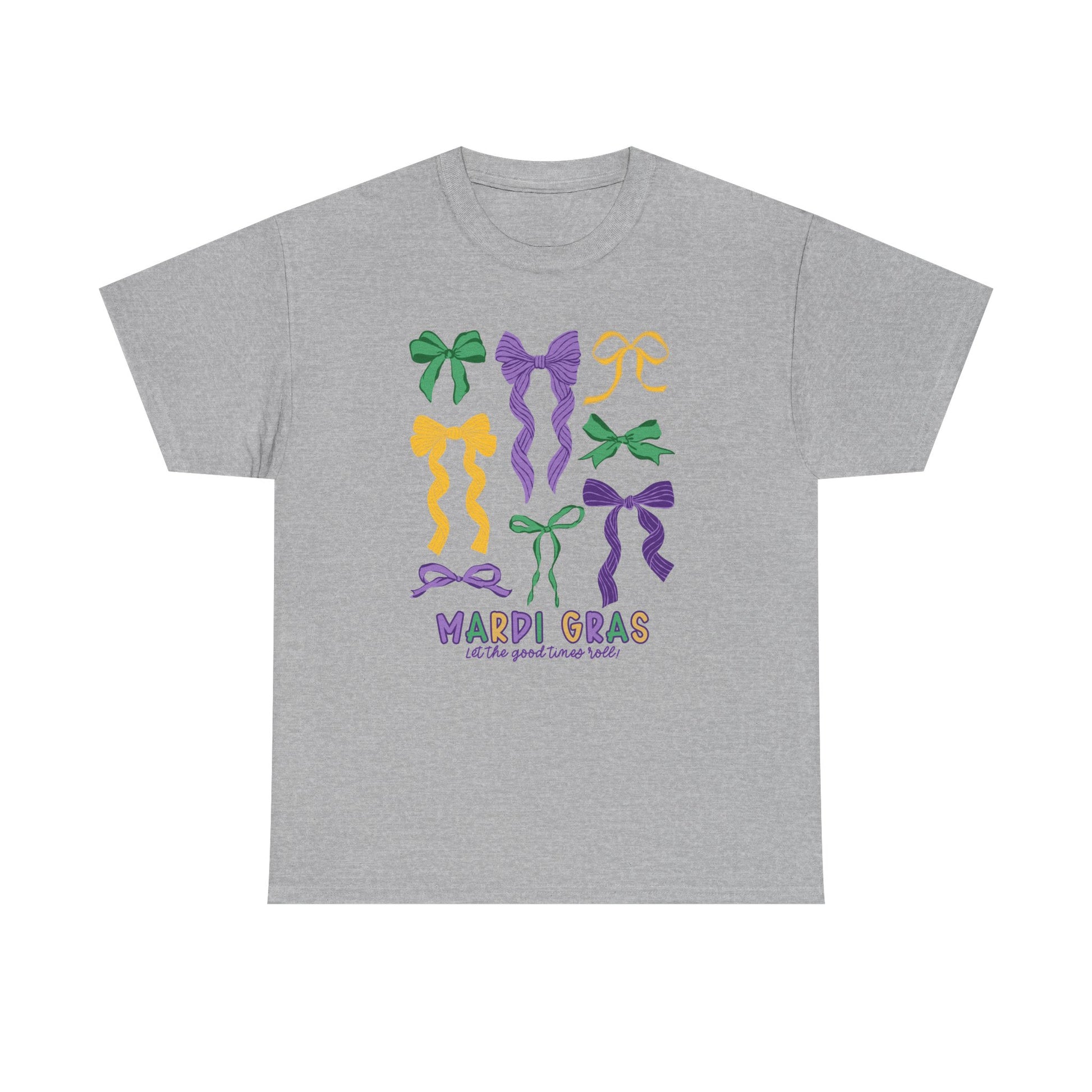 Mardi Gras Croquette Bow on a Gildan T-Shirt
