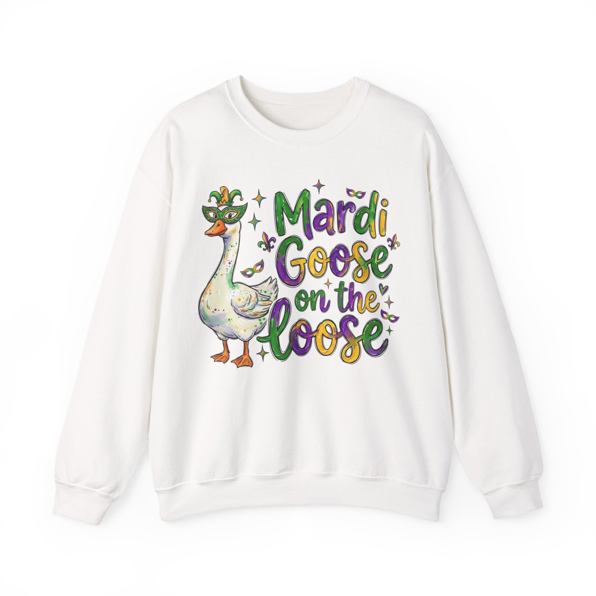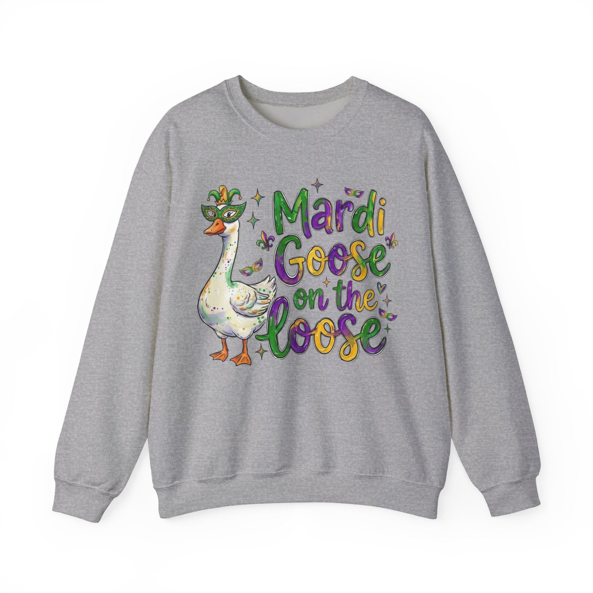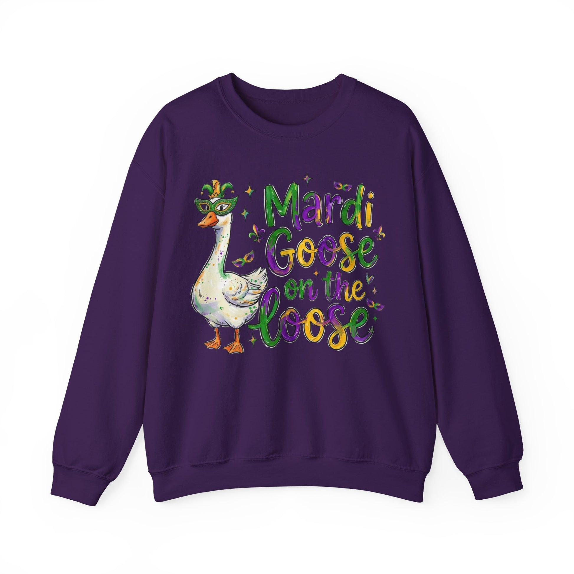 Mardi Gras Goose on the Loose Design on a Gildan Sweatshirt