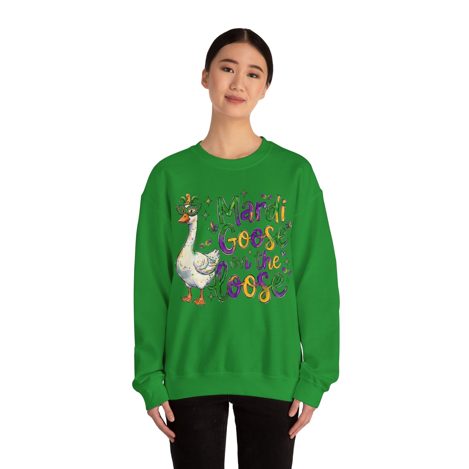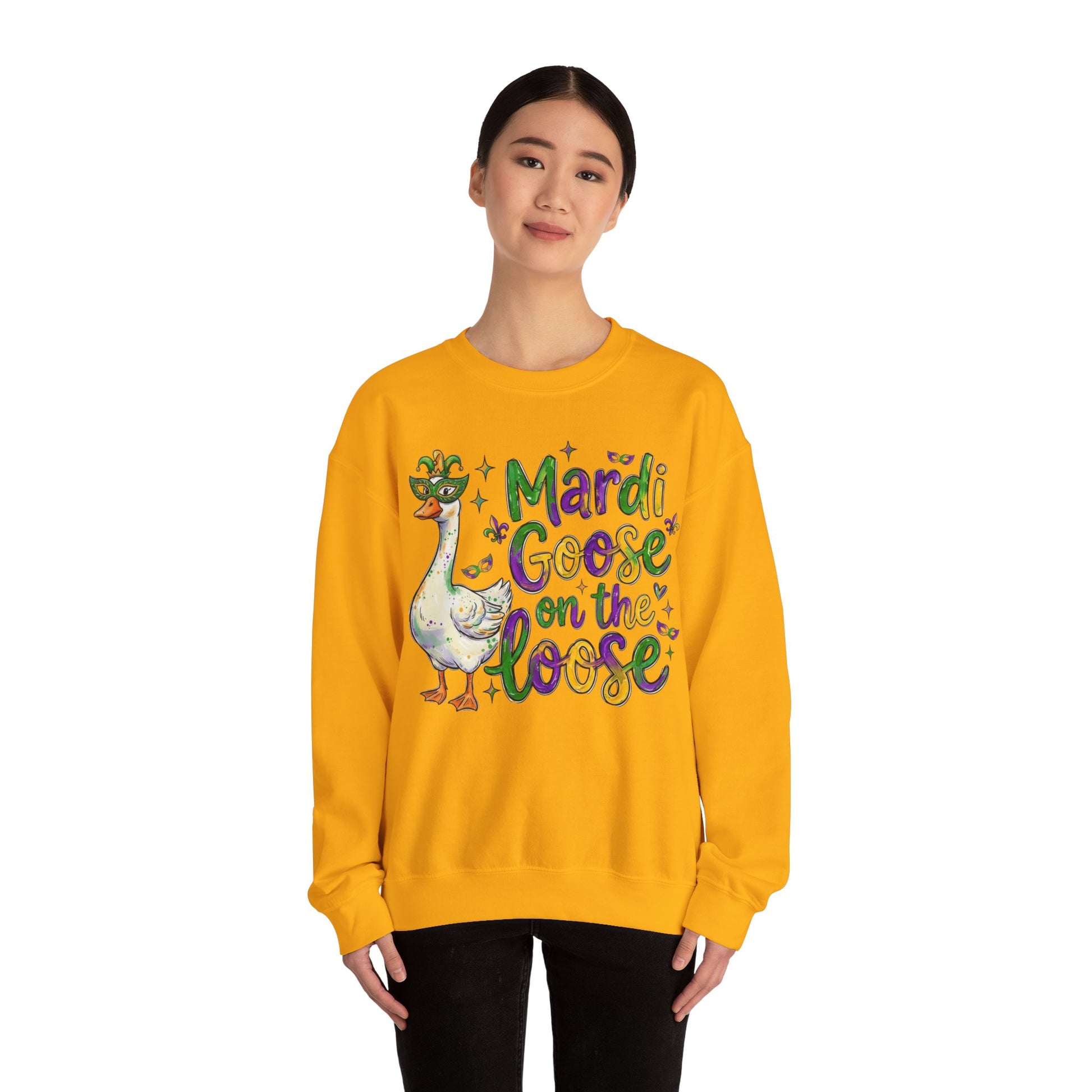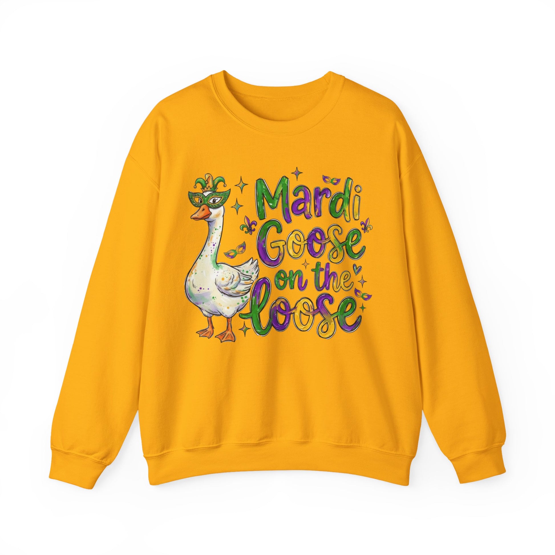 Mardi Gras Goose on the Loose Design on a Gildan Sweatshirt