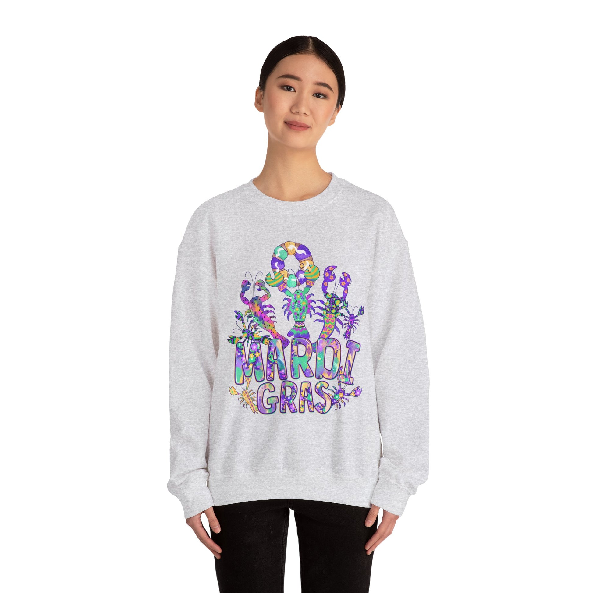 Mardi Gras Watercolor Crawfish on a Gildan Sweatshirt