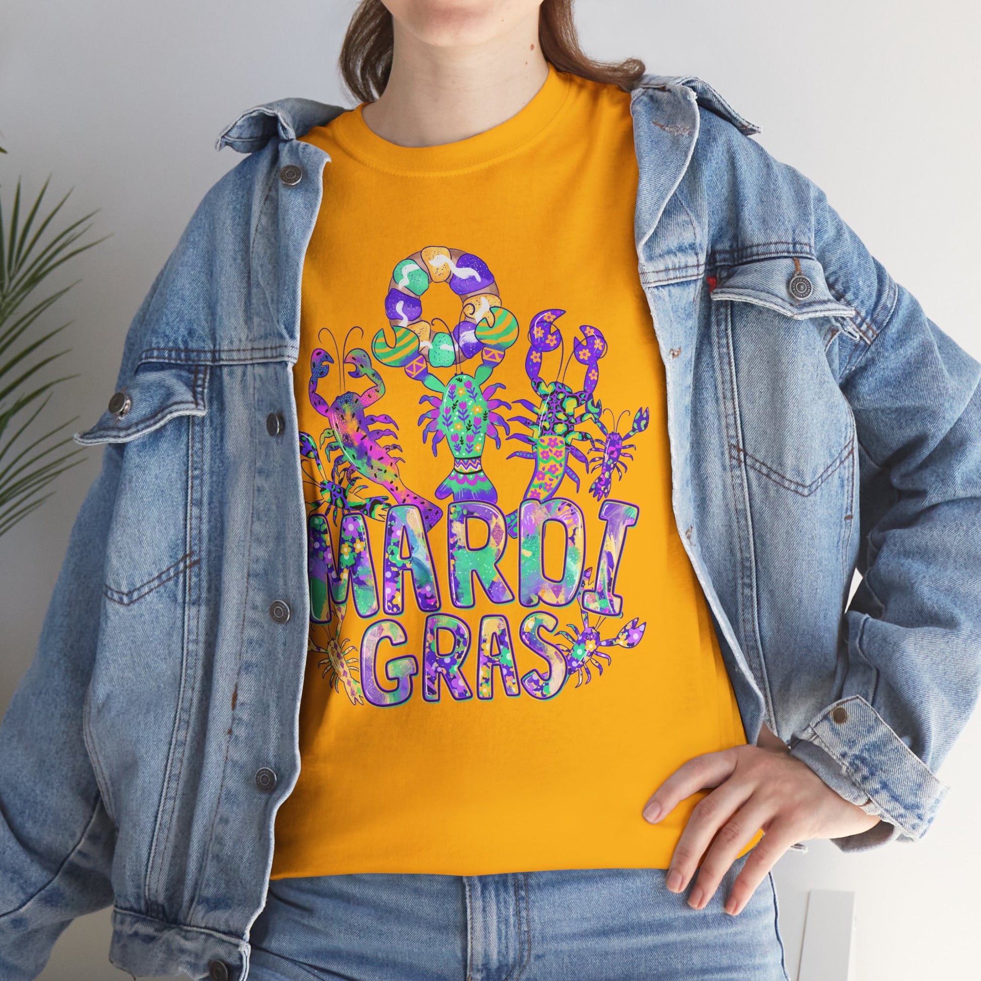 Mardi Gras Watercolor Crawfish on a Gildan T-Shirt